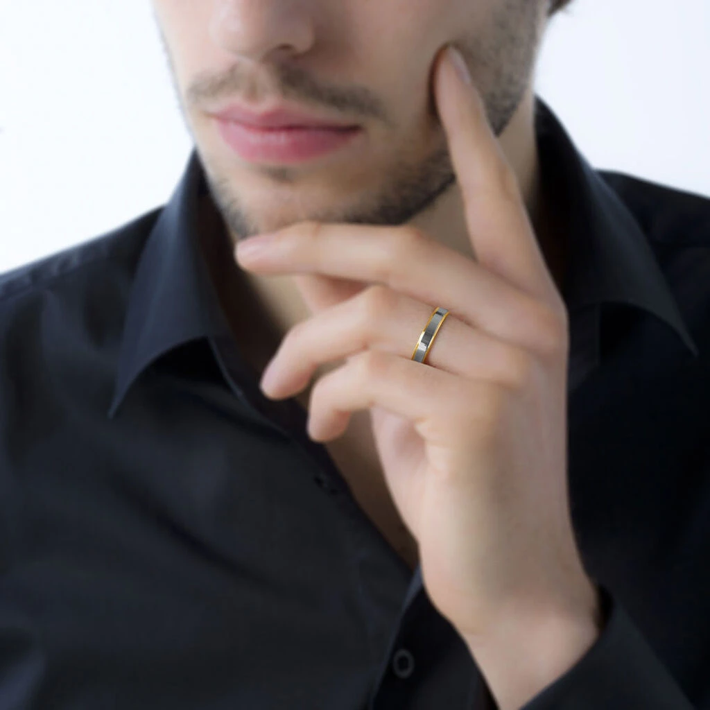 Alliance Or Bicolore 750/1000 Fantaisie Lisse Jaune Et Blanc 4mm