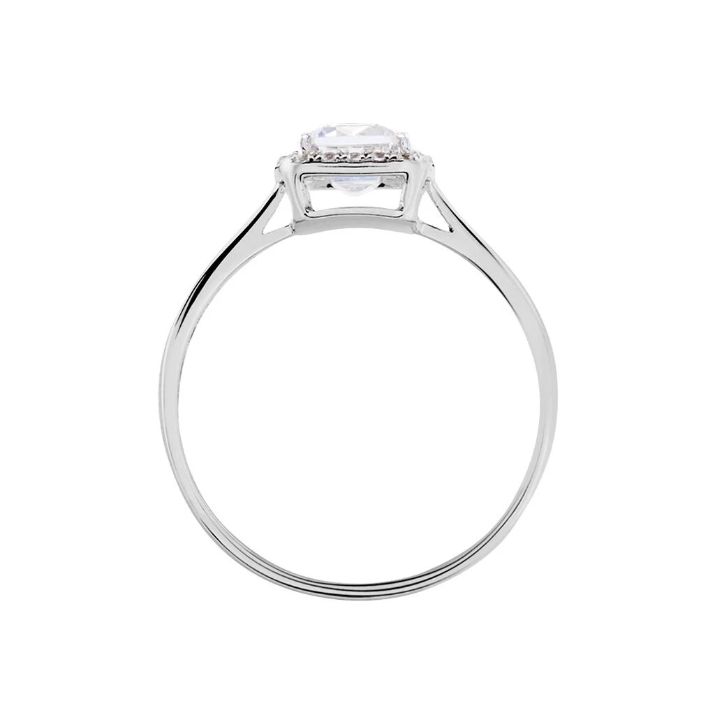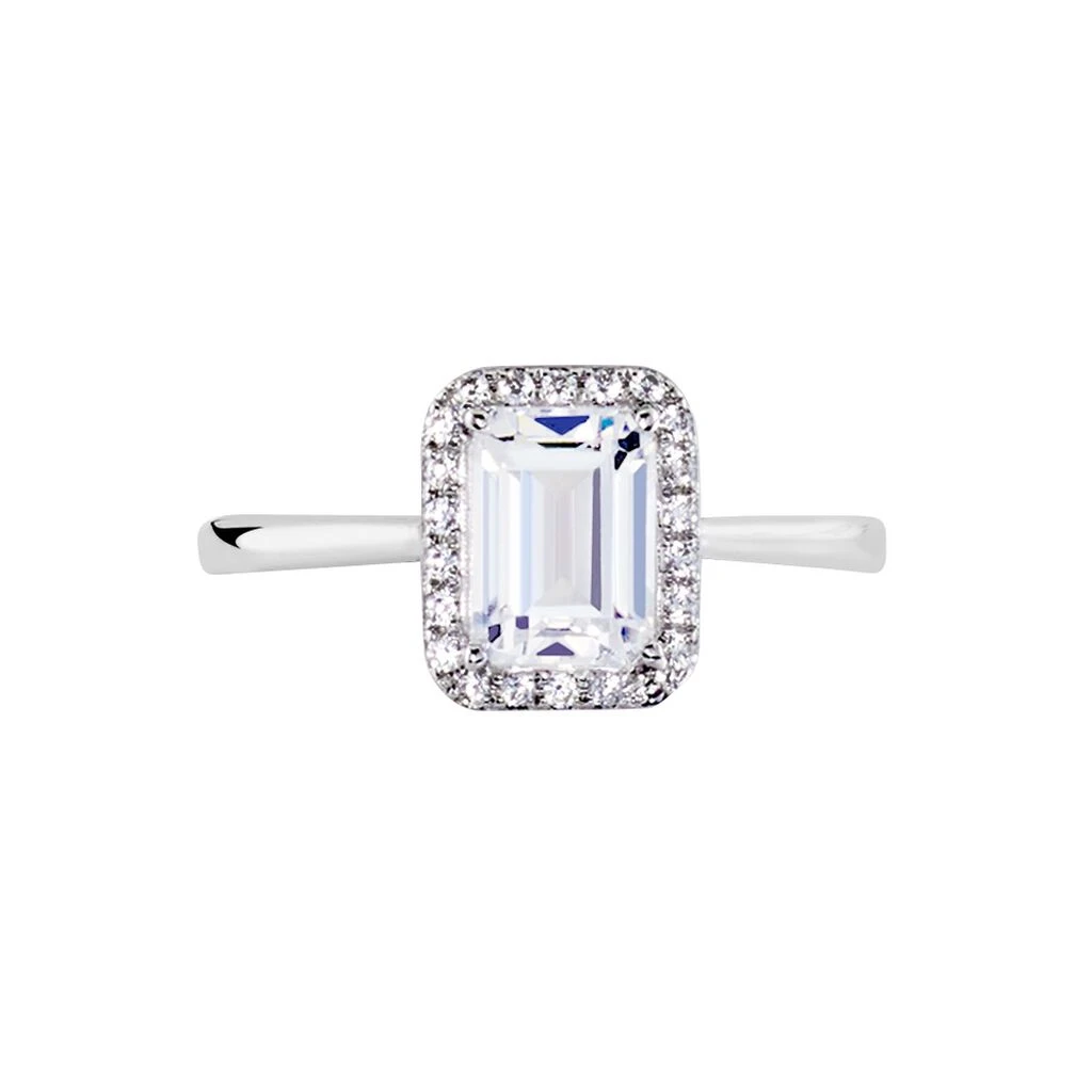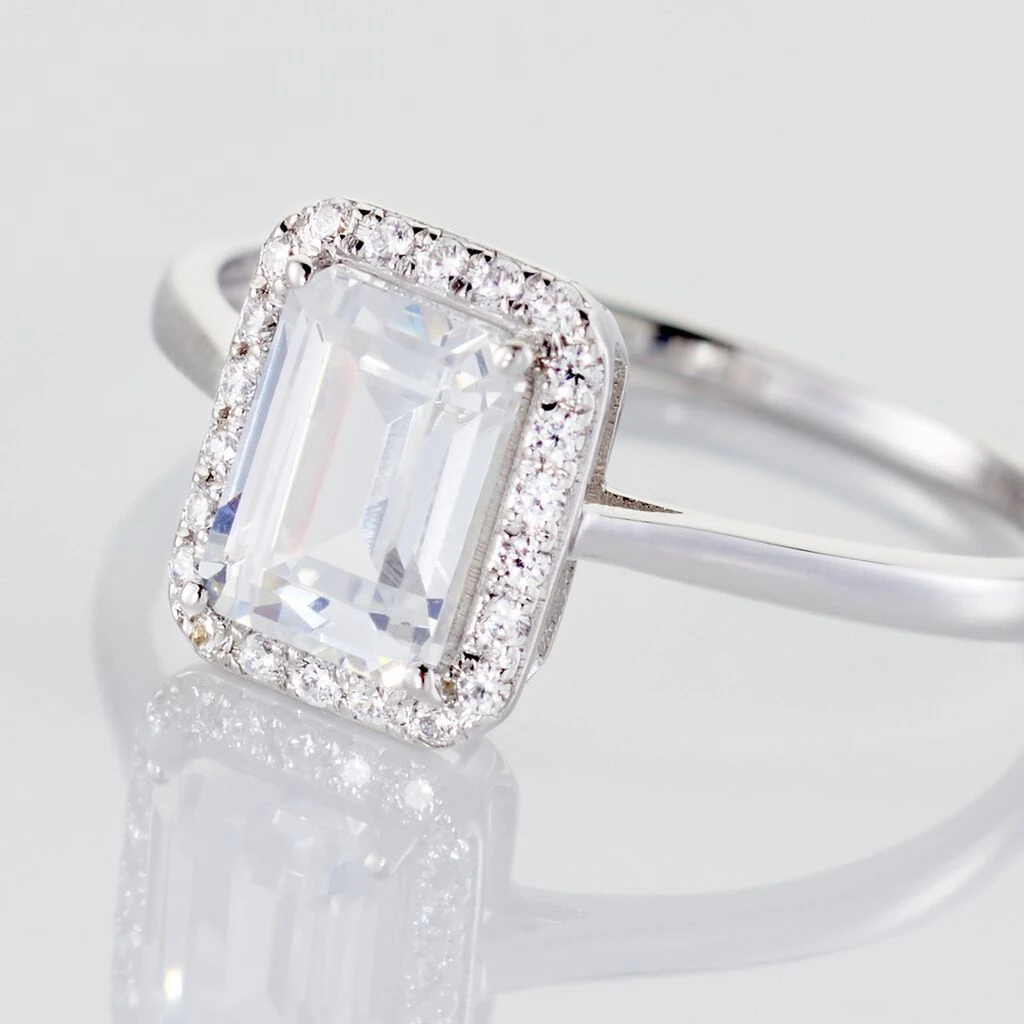 Bague Or Blanc 375/1000 Oxyde De Zirconium Taille Emeraude Entourage Oxydes De Zirconium