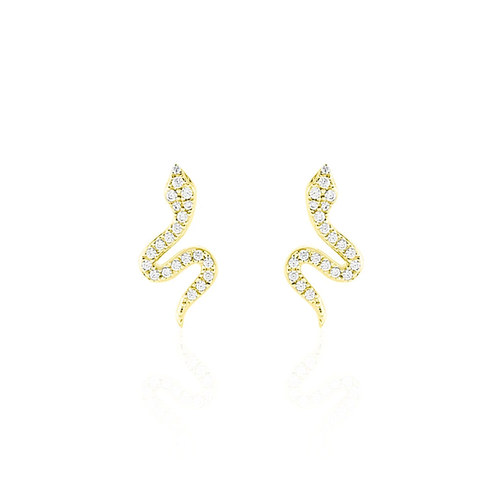 Boucles D’oreilles Or Jaune 375/1000 Formes Serpents Oxydes De Zirconium
