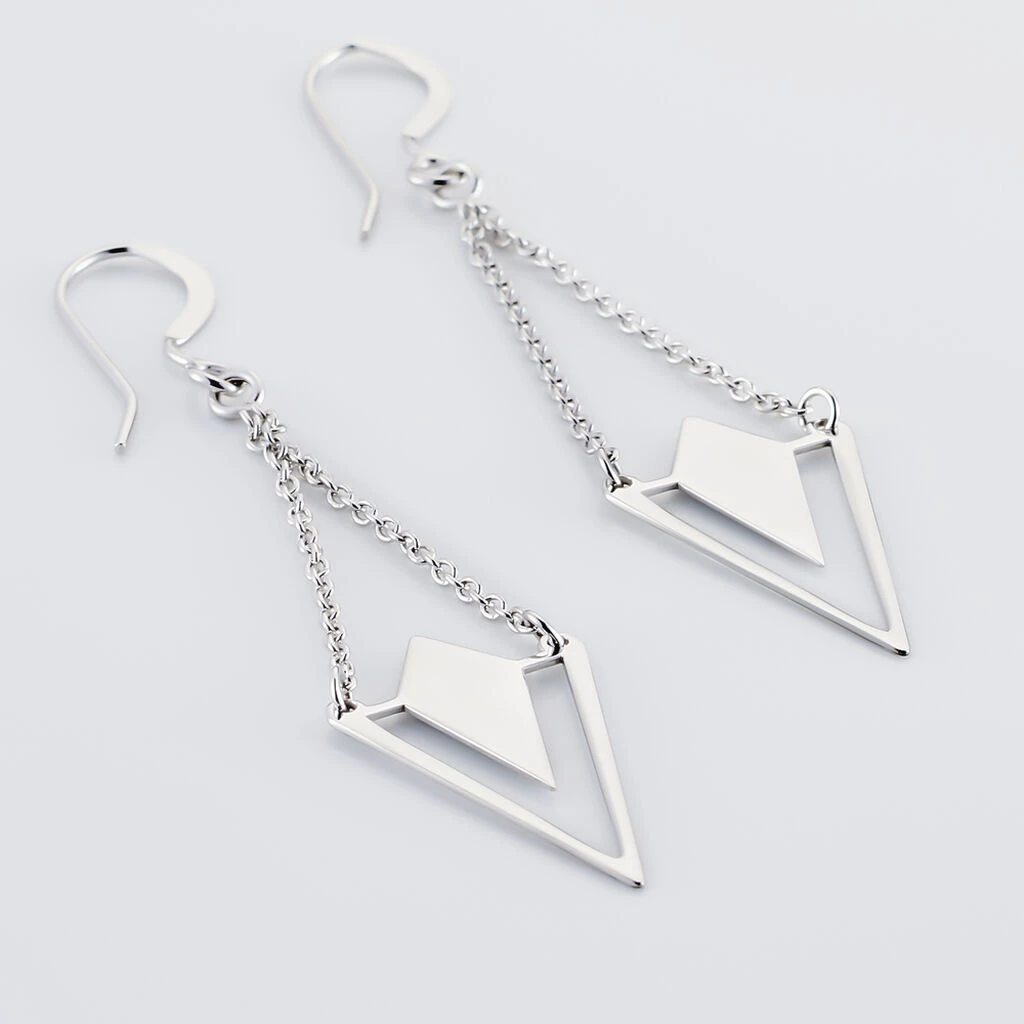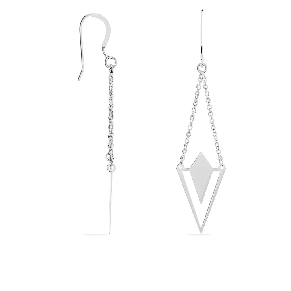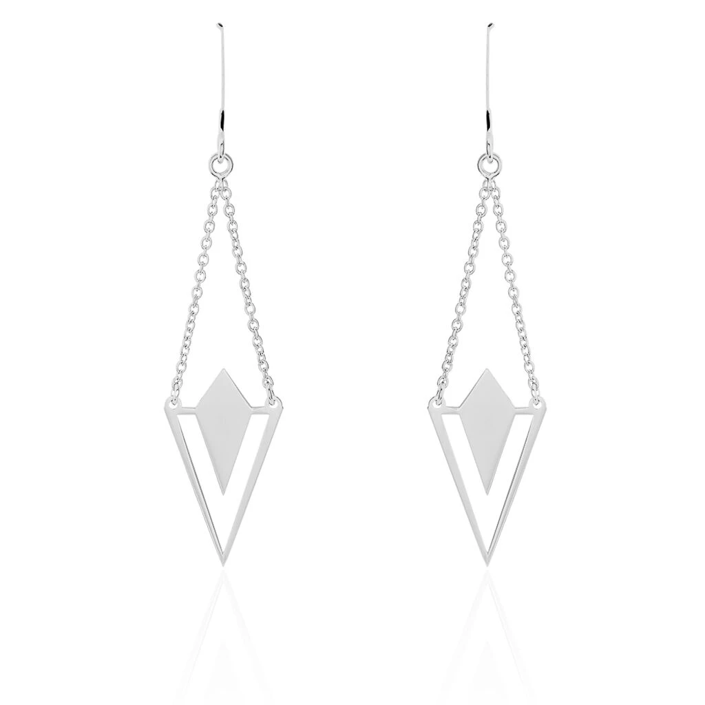Boucles D’oreilles Pendantes Argent Blanc 925/1000 Triangles Ajoures Et Losanges Double Maille Forcat