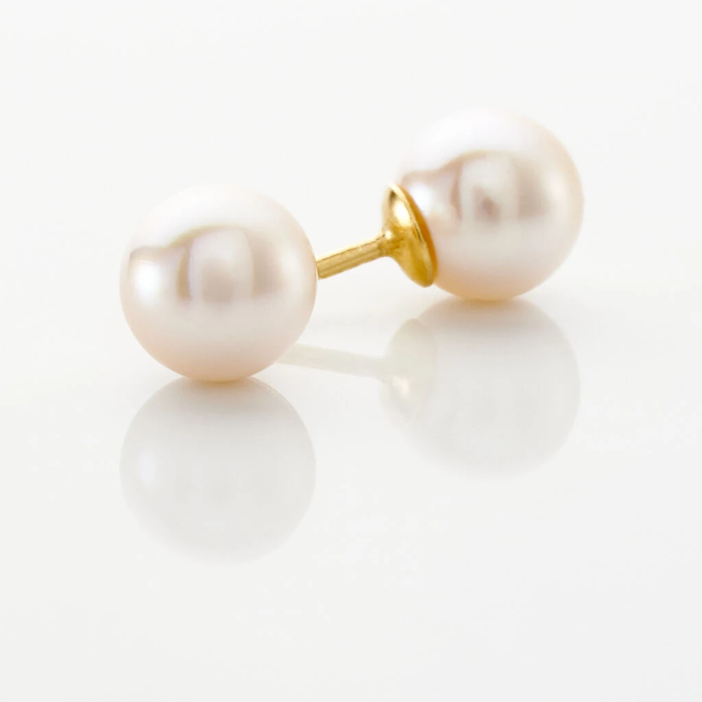 Boucles D’oreilles Puces Akoya Or Jaune Perle De Culture D’akoya