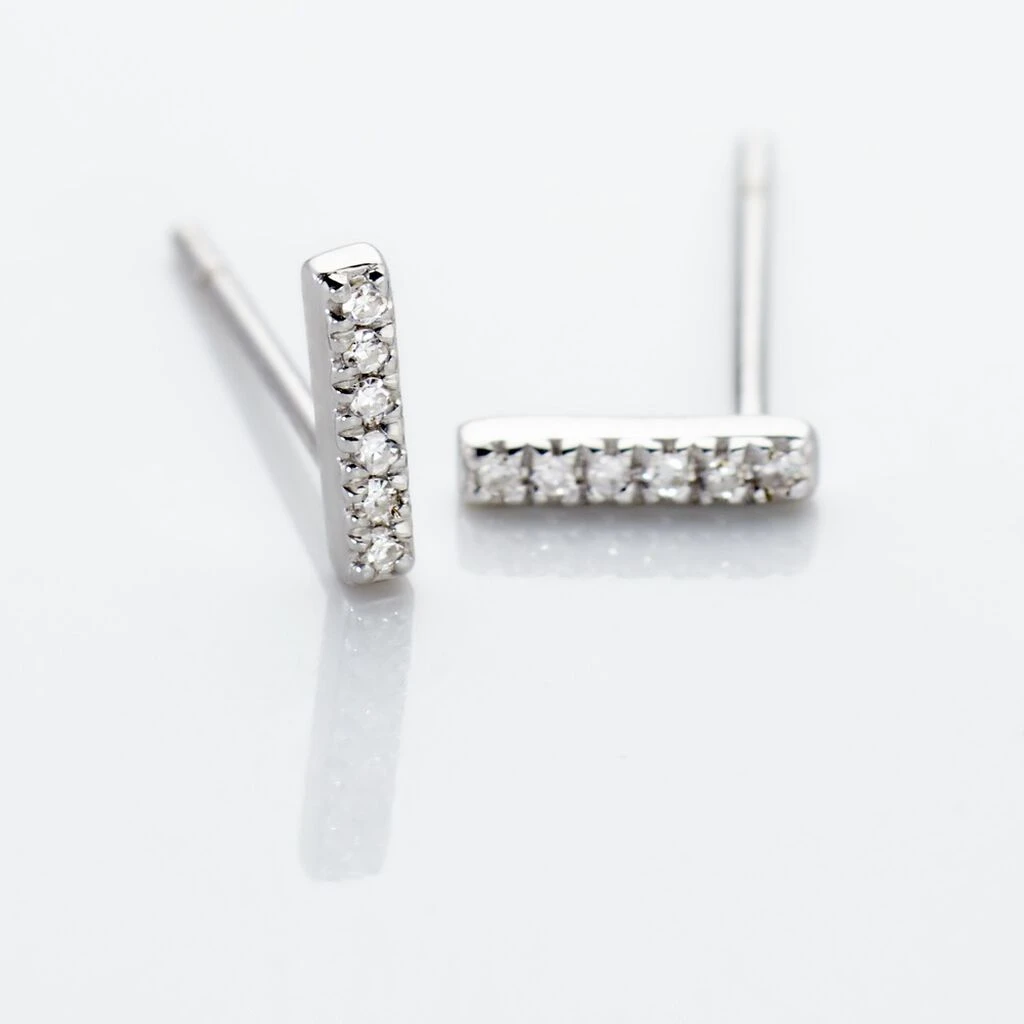 Boucles D’oreilles Or Blanc 375/1000 Puces Barrettes Diamants