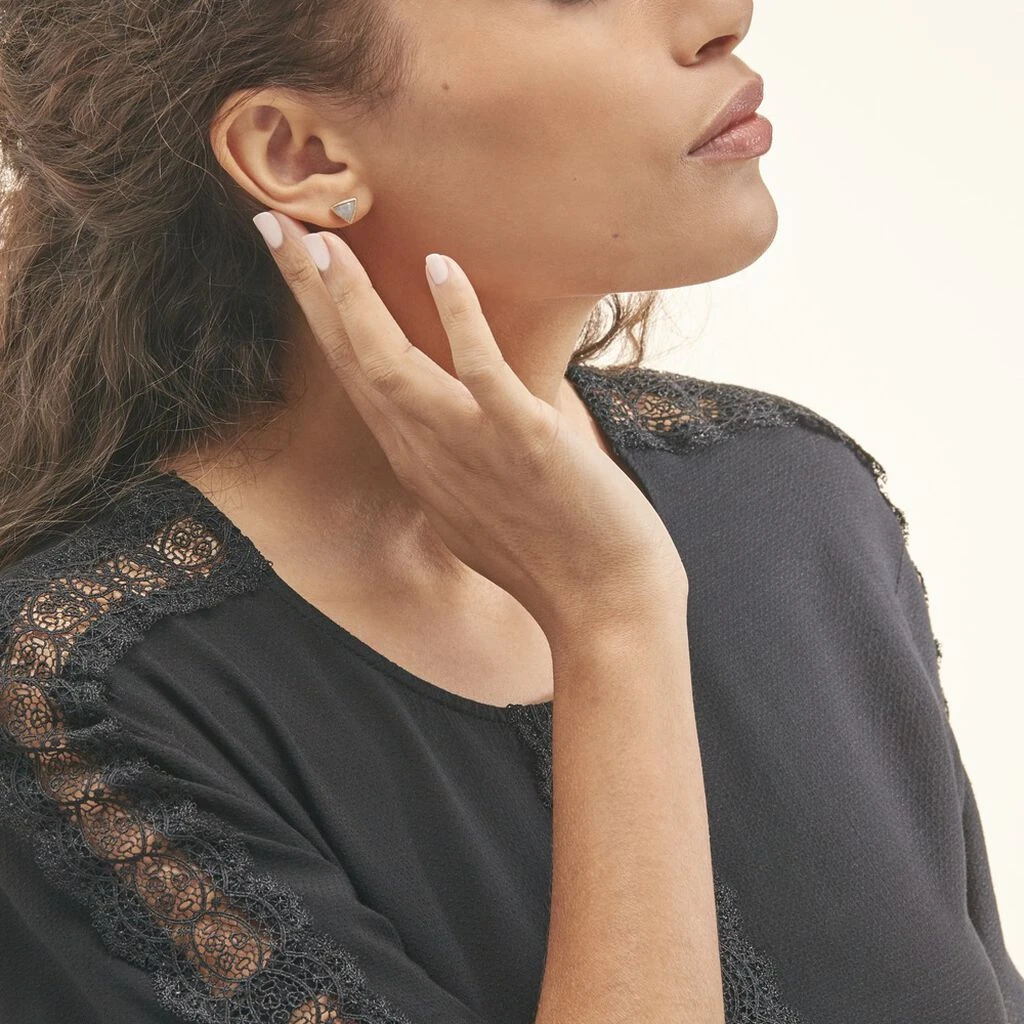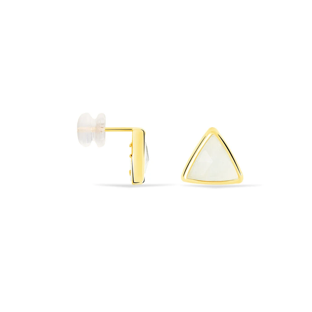 Boucles D’oreilles Or Jaune 375/1000 Puces Aigues Marine Formes Triangles Sertis Clos