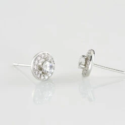 Boucles D’oreilles Or Blanc 375/1000 Puces Entourages Oxydes De Zirconium