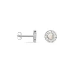 Boucles D’oreilles Or Blanc 375/1000 Puces Entourages Oxydes De Zirconium