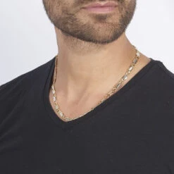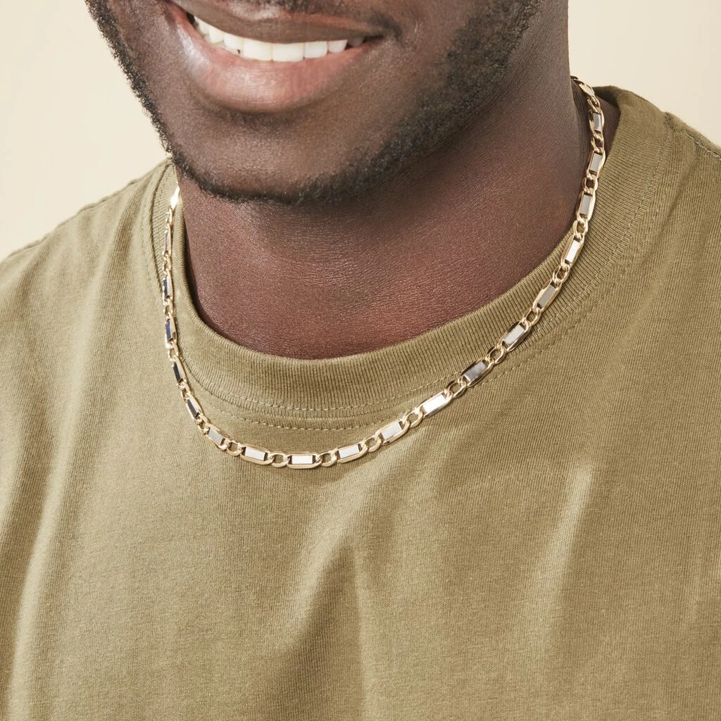 Collier Or Bicolore 375/1000 Maille Plaquette 5.7mm 50cm